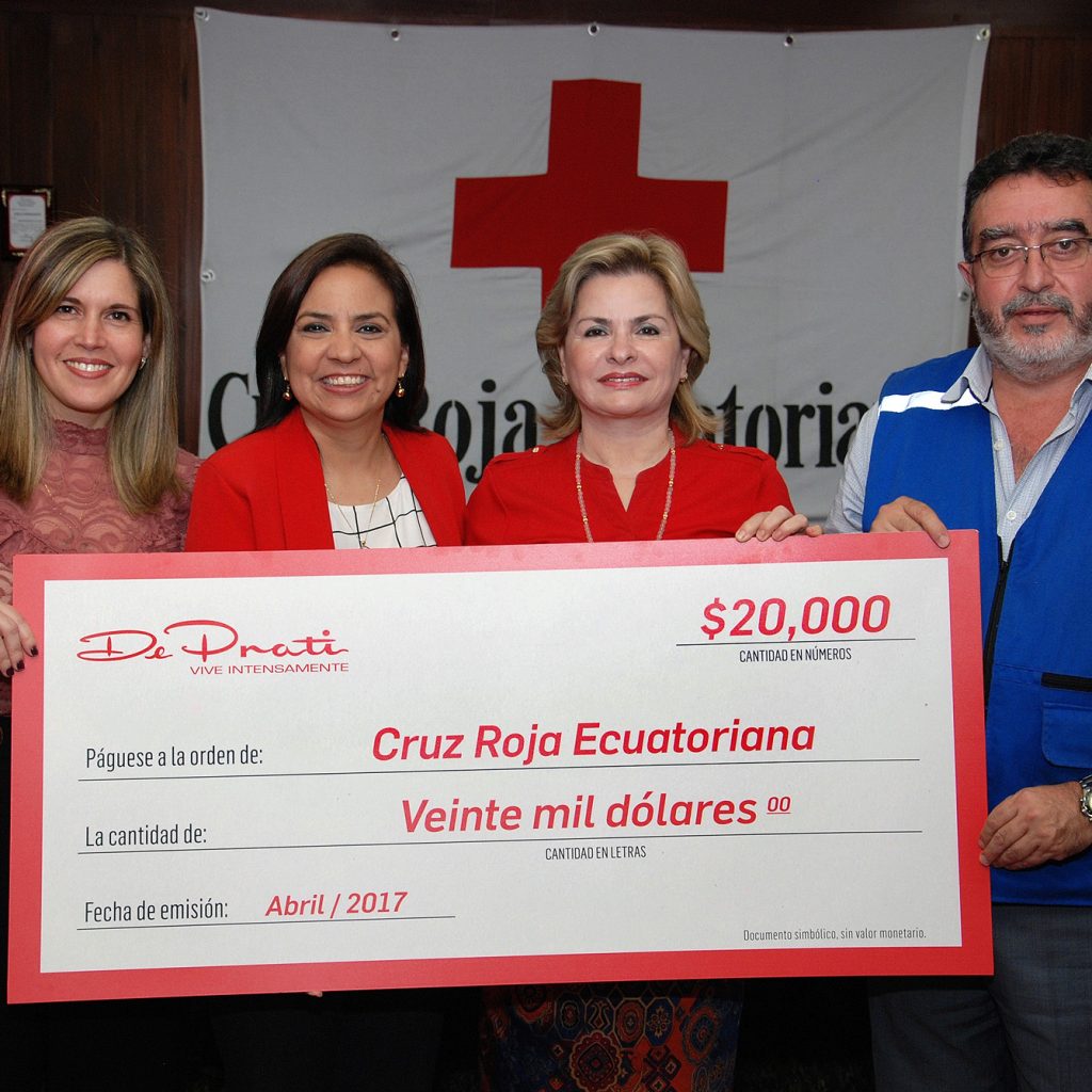 Guayaquil, Mayo de 2017.- Almacenes De Prati permanentemente trabaja en acciones de solidaridad con la comunidad, en este contexto realizó una donación a la Cruz Roja Ecuatoriana. Dicho aporte se realizó en el marco de la campaña Comparto mi corazón, que consistió en la venta de camisetas solidarias donadas por sus proveedores, dedicadas a nuestros hermanos de la costa del país, damnificados por el terremoto del año anterior.