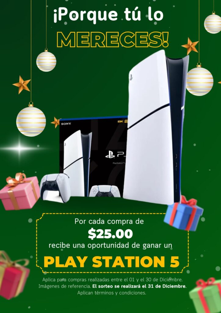 Los clientes tendrán la oportunidad de ganar un  PlayStation 5, por cada $25 USD en compra, el cliente recibirá un ticket numerado para participar en el sorteo que se realizará el 23 de diciembre.