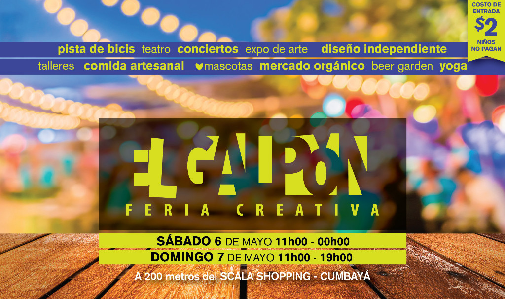 La 8va edición de El Galpón feria creativa se llevará a cabo los días Sábado 6 de Mayo de 11h00 a 24h00 y Domingo 7 de Mayo de 11h00 a 19h00 en Cumbayá. Queremos celebrar a la Madres con dos jornadas familiares completas, donde podrán encontrar: pintura, escultura, fotografía, ilustración, mercado orgánico y productos artesanales, hot yoga, cerveza artesanal, entre otros. Además de esto, contaremos con deliciosa comida preparada por auténticos cocineros.