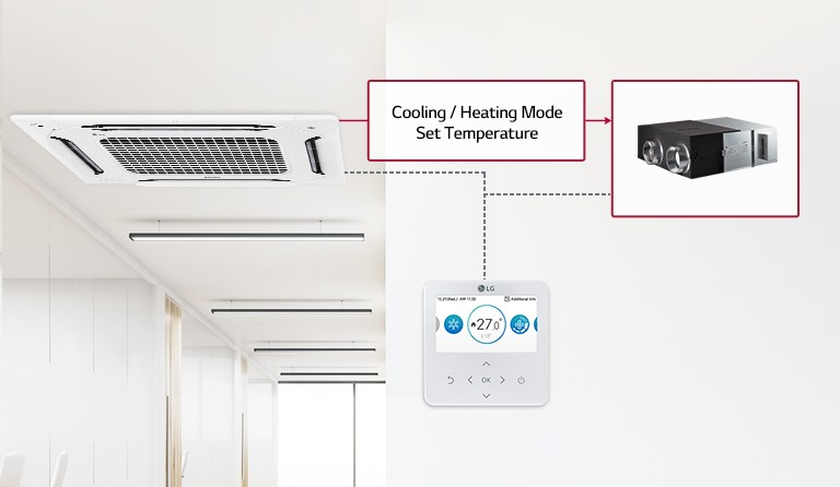 Por ejemplo, LG DUAL Vane Cassette, una unidad de aire acondicionado interior tipo techo de 4 vías, puede ser un reemplazo ideal cuando está equipado con el kit de purificación de aire de LG. Proporciona una filtración de aire robusta para eliminar el 99,9% de las bacterias dañinas y las partículas PM 1.0.