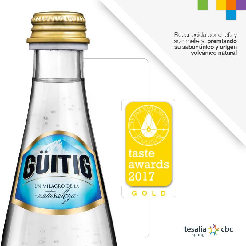 El galardón de oro denominado Gold Taste Awards 2017, fue obtenido luego que Güitig fuera calificada por un jurado conformado por cinco sommeliers de clase mundial, entre los cuales figuran nombres como Götz Graeber, Jason Kuok, Martin Riese, Peter Svenningsen y Michael Mascha, fundador de Fine Water Society.