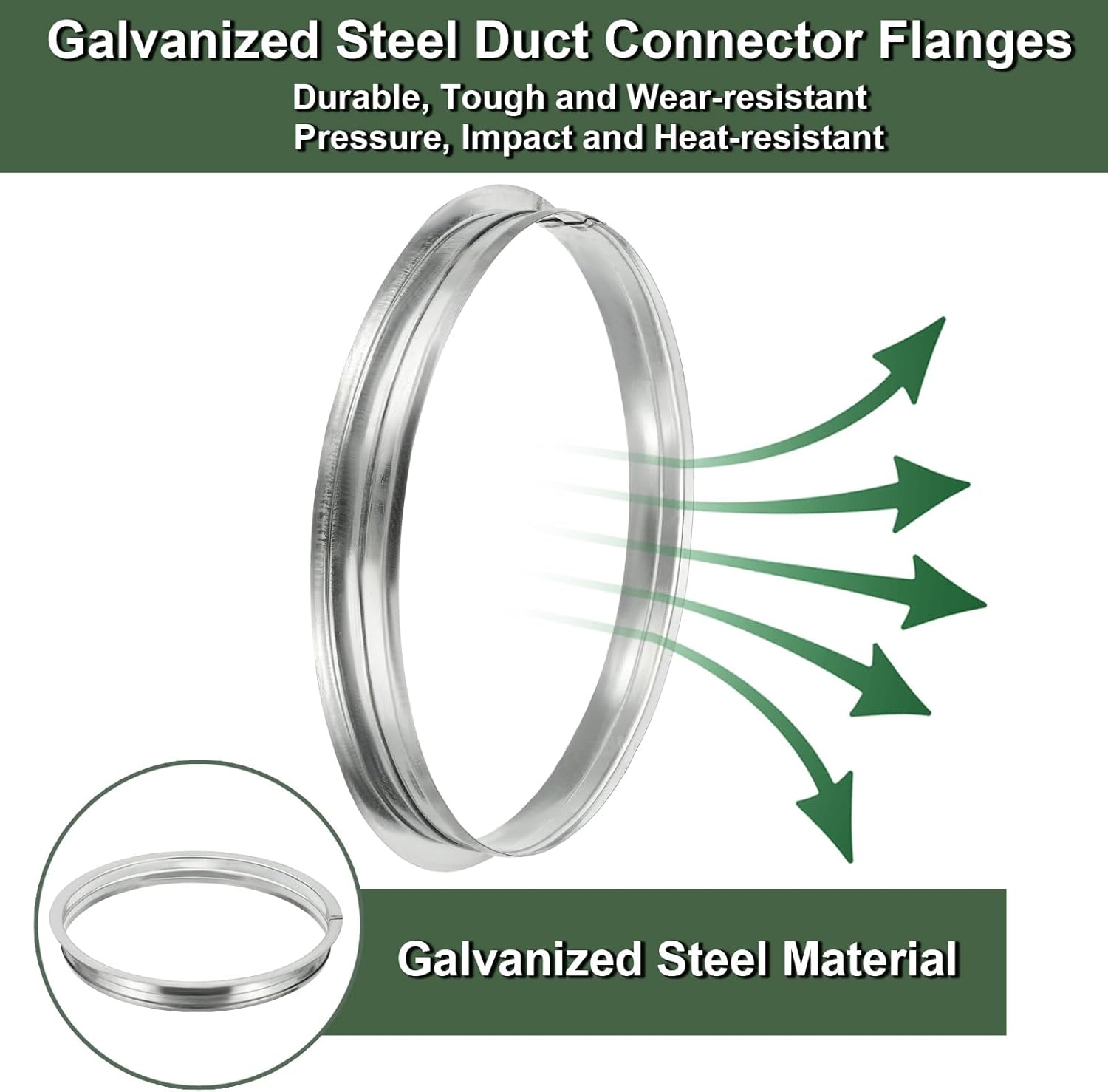 • RELIABLE MATERIAL - Crafted from thickened galvanized steel, these duct connector flanges exhibit exceptional durability and resistance to pressure, impact, heat, and chemicals. Waterproof, moisture-resistant, and wear-resistant, excellent toughness ensures long-lasting use without deformation.
