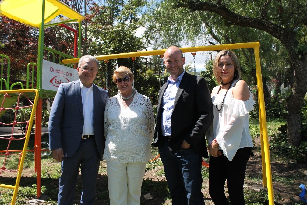 Quito, febrero 2018 - En una mañana llena de alegría, Takeda la farmacéutica enfocada en brindar mayor bienestar a la salud de las personas a nivel mundial, compartió junto a la Fundación EINA - Enseñanza Individualizada para niños, niñas y adolescentes - la donación de un juego infantil para la diversión de todos los estudiantes de esa entidad sin fines de lucro.